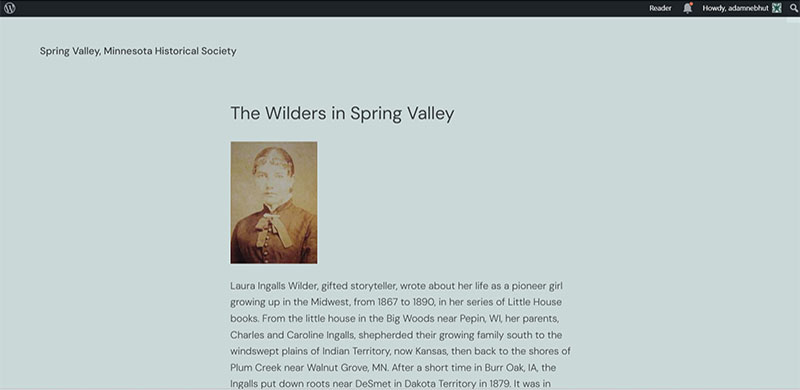Later, from May 1890 to October 1891, Laura, Almanzo, and Rose returned to live with the Wilder family in Spring Valley following a series of difficult years in De Smet.