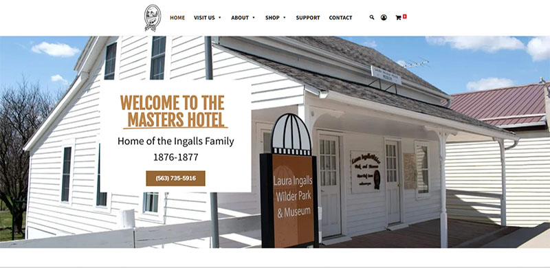 The museum complex includes seven buildings filled with exhibits about Laura’s life and the town’s history, including an original Walnut Grove jail cell.  There, children can enjoy hands-on activities in Grandma’s Attic, while fans of the television series will enjoy props from NBC’s Little House on the Prairie, including the mantle from the television show. Across the street, the Masters Store and Hall, which Charles Ingalls helped construct, is currently under renovation but can still be viewed from the outside.