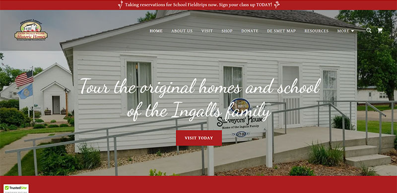 The Laura Ingalls Wilder Memorial Society preserves several important historic buildings connected to the Ingalls family’s years in De Smet, South Dakota. Visitors can tour the Surveyors’ House, where the Ingalls family lived when they arrived in Dakota Territory.